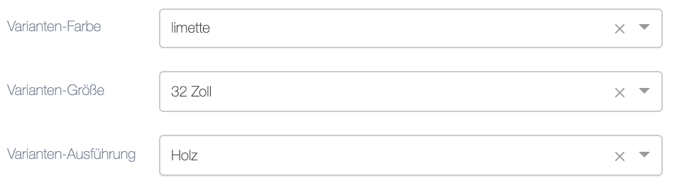 Varianten entstehen aus der Kombination mehrerer voneinander abhängiger Attribute (nicht nur Farbe und Größe)